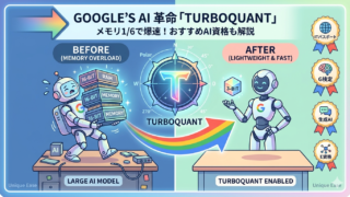 「AIは難しそう…」という方必見!Googleが発表したAIダイエット技術「TurboQuant」を身近な例えで図解。スマホでAIが爆速で動く未来がすぐそこに。記事後半では、AI時代を生き抜くために役立つITパスポートやG検定などの注目資格もまとめて紹介します。